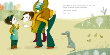 Marta Chicote Juiz es la encargada de ilustrar este texto, que también muestra a una familia que colabora junta en las tareas familiares, apoya a su hija en sus decisiones y le hacen entender que ellos la van a querer siempre haga lo que haga.
