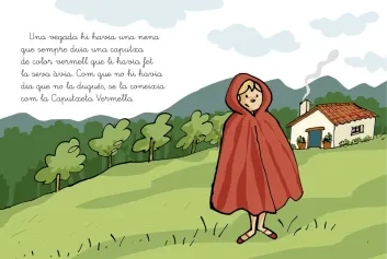 Una vegada hi havia una nena que sempre duia una caputxa de color vermell que li havia fet la seva àvia. Com que no hi havia dia que no la dugués, se la coneixia com la Caputxeta Vermella. Un dia, la seva mare li va donar un cistell amb el berenar perquè el portés a la seva àvia.