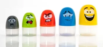 Alegría, tristeza, enfado, asco y miedo. Cinco emociones básicas representadas en cinco cápsulas en cuyo interior se pueden guardar dibujos u objetos relacionados con cada una de ellas.