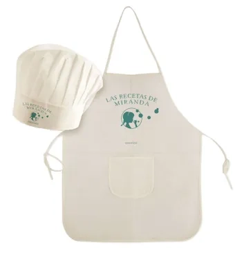 Incluye delantal y gorro de cocinero a juego decorados con el logo de la colección, en talla infantil.