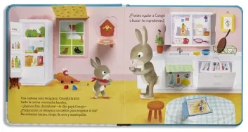 Buscad en las alacenas, entre los arbustos y dentro del gallinero. Ayudad a Conejita a reunir todos los ingredientes para preparar con su padre un riquísimo desayuno sorpresa.