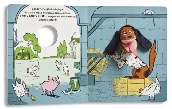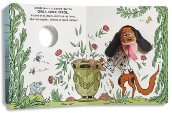 Un libro lleno de humor que incluye una divertida marioneta de dedo para jugar a dar sustos con el perro Dimas y tomarle un poco el pelo a este can un poco señorito y despistado.