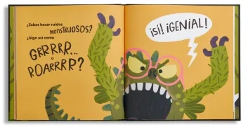 Todo el libro supone un juego muy divertido para los más pequeños. Tanto por la historia, como por el uso de la tipografía y las ilustraciones expresivas, desenfadadas y coloristas. ¡No te pierdas el aspecto del monstruo!