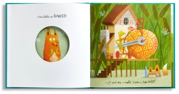 Este divertidísimo álbum ilustrado infantil editado en tapa dura contiene troqueles que proponen a los pequeños un juego humorístico. Sin cambiar de forma, y por medio de una retahíla, el misterioso objeto encontrado al inicio de la historia va teniendo un uso diferente para cada animal.