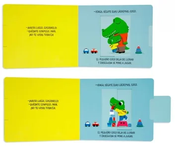 El pequeño cocodrilo, canguro, mono, oso y gato tienen que acostumbrarse a despedirse de sus padres cuando van al colegio. Porque a separarse de papá y mamá también se aprende.