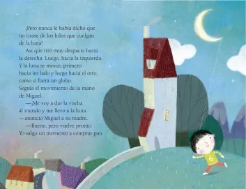 Miguel encuentra un hilo en el jardín de su casa que cuelga de la luna. Intrigado, tira de él y observa que esta se mueve. Tras su feliz descubrimiento, decide dar la vuelta al mundo con su nueva compañera. Sin embargo, Miguel se asusta cuando descubre que todo a su alrededor desaparece tras del hilo: luna, estrellas, nubes…