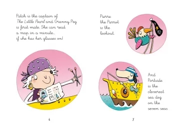 Patch is the son of a pirate couple, who consider him too young to embark with them. That is why he will stay with his pirate grandmother, Granny Peg, and her pets, the dog Portside and the parrot Pierre. They will have fun adventures at sea and face their clumsy enemies, the pirates Jones and Bones, while their parents think they are still on land.