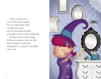 Això era una bruixa jove que tenia tota la cova plena d’espills per a poder vore’s sempre reflectida. Tenia tot allò que sol tindre una bruixa: una granera, un gripau, un calder... Però... no s’acabava d’agradar i no estava feliç. Fins que va aprendre que la bellesa no sempre la reflectix l’espill.